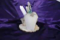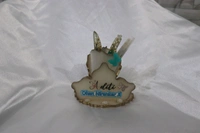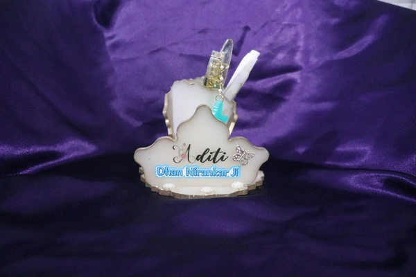 White resin creative pen stand with golden border